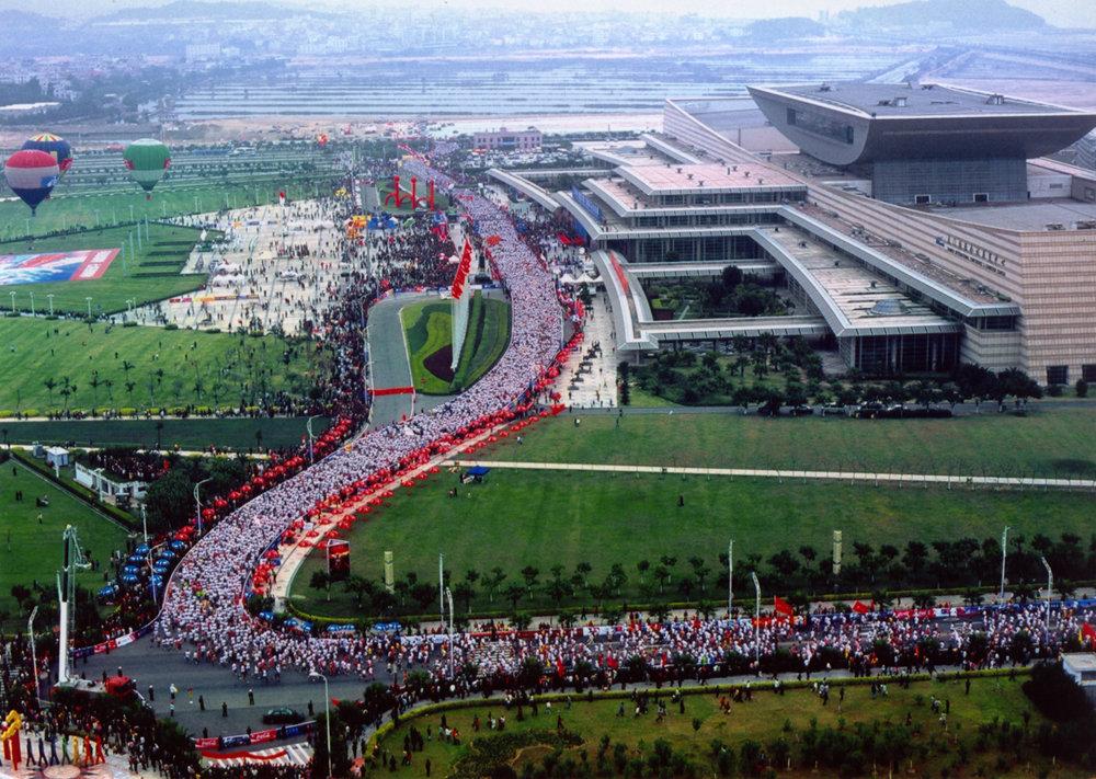 廈門國際會(huì)展中心是集展覽、會(huì)議、酒店為一體,并配套餐飲、廣告、貿(mào)易、倉儲(chǔ)等服務(wù)的大型現(xiàn)代化展覽館。位于廈門島東南海岸,風(fēng)景秀麗、交通便捷,與小金門島隔海相望,直線距離僅4600米。首期工程占地47萬平方米,建筑面積16萬平方米,其中室內(nèi)展區(qū)面積4.7萬平方米,設(shè)2200個(gè)國際標(biāo)準(zhǔn)展位,室外展區(qū)面積5.6萬平方米,配套20余間中高檔會(huì)議室,以及會(huì)展廣場、四星級酒店、餐飲中心等。